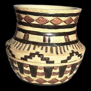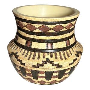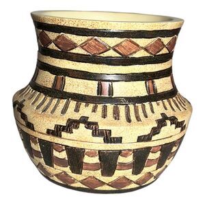 Aztec Design carved segmented hand painted vase Made in India 4" tall and wide
