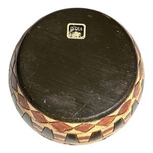 Aztec Design carved segmented hand painted vase Made in India 4" tall and 4" wide at widest point. I put hands painted, where brush strokes can be seen. Also unknown if it's "Hand made" so I did not label as such.