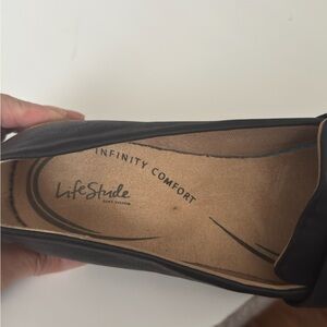 Sleek black loafers with stylish brown trim. Perfect for everyday wear. New