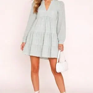 NWT Nasty Gal Light Green Long Sleeve Tiered Dress