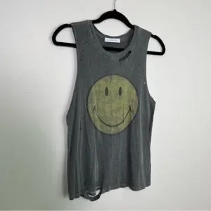 DAYDREAMER SMILEY Smiley Face Destroyed Distressed Graphic Print Tank size XS