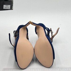 XYD Blue Women Peep Toe Ankle Bootie High Heels Buckled Double Straps Cutout Fashion Pumps Night Club Party Shoes