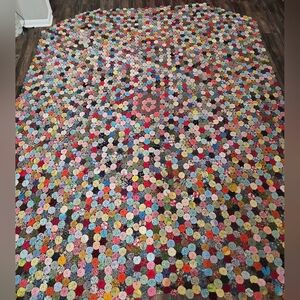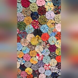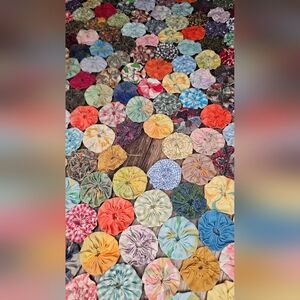 Vintage Handmade Colorful Yo-yo Patchwork Quilt Bedspread King 85.5"x101"