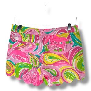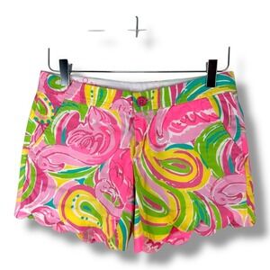Lilly Pulitzer Buttercup Shorts Flamingo Print Scalloped Hem Bright Size 00