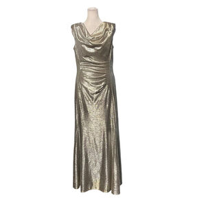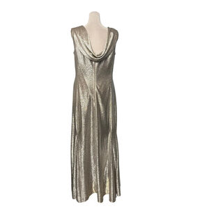 Tahari Silver Metallic Drape Neck Gown Size 12