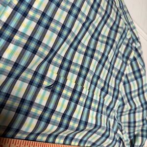 Nautica Button Down Shirt Check Green Sea Blue Yellow Size XL Classic Fit Office