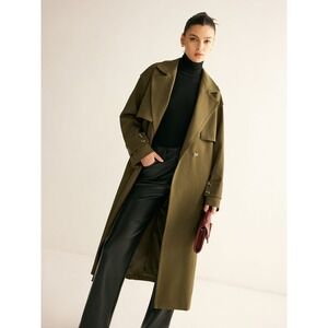 Commense Olive Green Trench Coat Longline Double Breasted Belted Classic Style