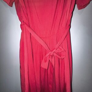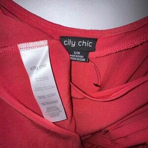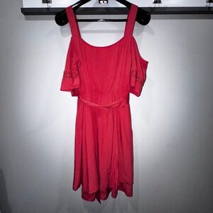 City Chic Burnt Coral Off Shoulder Tie @ Waist Cold Shoulder Eyelet Dress S 16
