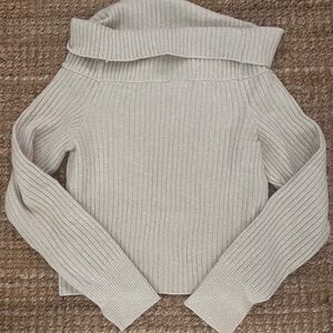 Cream Off-Shoulder Ribbed Aerie Sweater