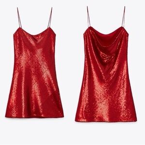 Zara Sequin Spaghetti Strap Red Holiday Mini Dress Blogger Fav festive Party lg
