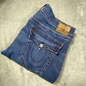 VTG True Religion Y2K Embroidered Men's Jeans 38x32 Flap Pocket Straight Cowboy