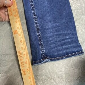 These denim jeans feature a mid-rise waist, zip closure, and a comfortable fit.
