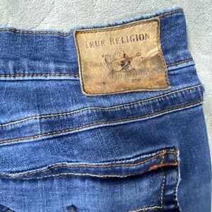 The VTG True Religion Y2K Embroidered Men's Jeans are a vintage piece with a classic straight cowboy style.