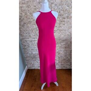 Calvin Klein High Neck Halter Sleek Pink Backless Formal Maxi Dress Gown Size 4