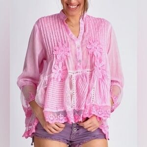 Muche & Muchette NWOT Women's O/S Jolene Cotton Voile Top In Pink
