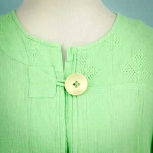Parsley & Sage Size Medium M Lime Green Embroidered Crew Neck Button Front Down 3/4 Sleeve Artsy Lagenlook Style 100% Cotton Lightweight Jacket