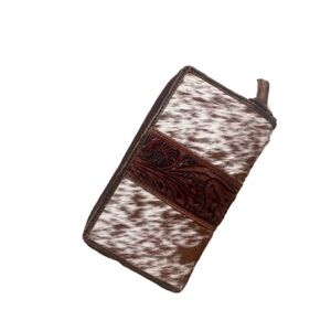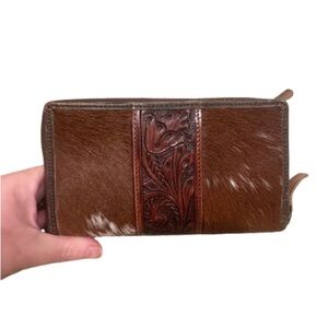 Calf Hair Hand Tooled Leather Zippered Wallet Wristlet NWOT