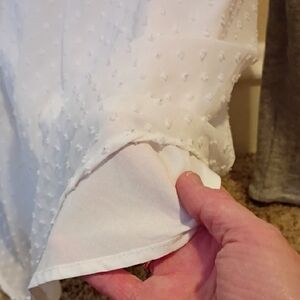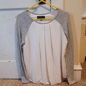 Elegant long sleeve top with textured white front and soft gray sleeves. Perfect for casual wear.