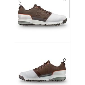 EUC FootJoy FJ Golf Shoes Mens 13 M White Brown Leather Spiked Sport Contour Fit