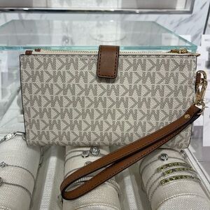 MICHAEL KORS Jet Set Trvl Lg Signature Logo Double Zip Smartphone Wallet Vanilla