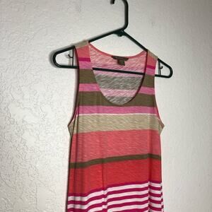 Tommy Bahama pink white tan striped sleeveless maxi dress. Pullover style with scoop neckline. Sleeveless. Size Extra Small XS. Excellent preowned condition. Minor wash wear.