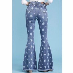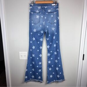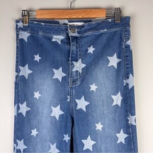 Cello Star Print Denim Blue Jeans High Waisted Bell Bottom Wide Leg Size 9