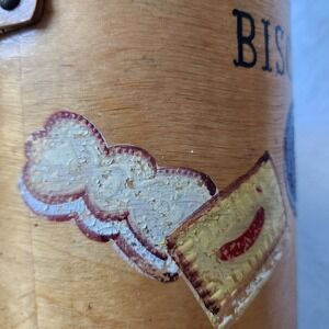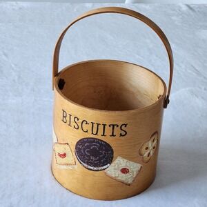 Vintage Wood Biscuit Barrel Hand Painted Cookies Pail 50s Farmhouse Cottage MCM