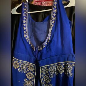 A couple stains as the fabric was vintage. Worn once. May need further cleaning from storage. Raw hem inner strap