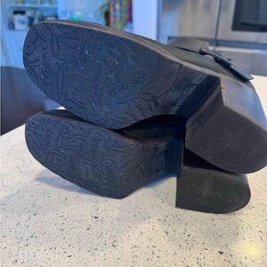 Chic black ankle booties with a stylish buckle. Perfect for versatile wear. Square toe. Minimal scuffs.