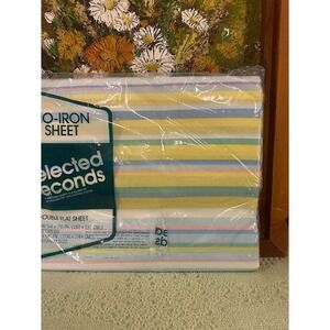 Keywords: Selected Seconds, double flat sheet, no iron sheet, pastel stripes, 180 count, polyester blend, vintage bedding, retro home decor, guest room, childrens bedding, soft colors, easy care