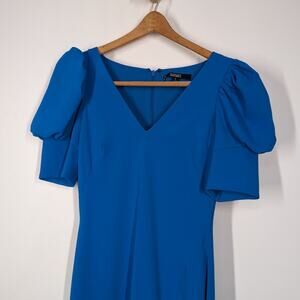Badgley Mischka Odessa Split Front Crepe Gown V-Neck Puff Sleeves Blue Size 0