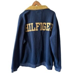 Vintage 90s Tommy Hilfiger Fleece Pullover Jacket Mens XL Blue Spellout 1/4 Zip
