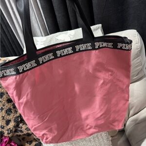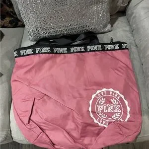 Chic tote bag in rose by PINK Victoria's Secret. Features bold branding and durable straps.