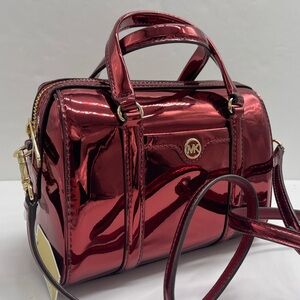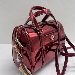MICHAEL KORS Jet Set Sm Metallic Convertible Crossbody Duffle XBODY Cherry NWT