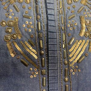 HANNAH Embellished Beaded Denim Jacket Ruffle Trim Size Medium Blue SEE DESCRIPT