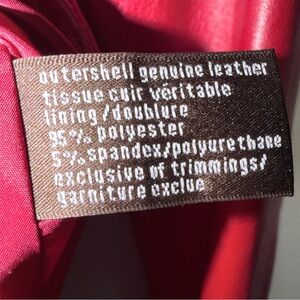 Stylish red leather blazer by Danier. Features classic lapel and button closure. Perfect for a polished look.