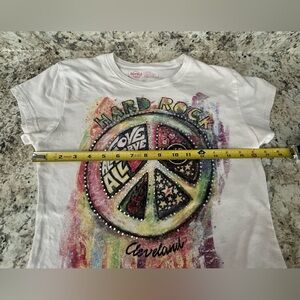 Hard Rock Cafe Cleveland Y2K Graphic Rhinestone Splatter Shirt Logo Size M