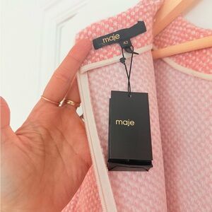 NEW Maje Pink Tweed Mini Dress Gold Button Shift Size 42 US 10 $495