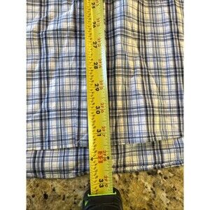 The product is a Men's XL Polo Ralph Lauren Oxford Shirt in Blue Plaid with the signature Pony logo. This classic fit button-down shirt features a collared neckline, long sleeves, and a woven fabric made of nylon and spandex. The shirt is lightweight and perfect for all seasons, making it a versatile and stylish addition to any man's wardrobe. With its patriotic and nautical themes, this shirt is ideal for casual occasions with a touch of preppy flair.