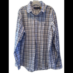 Polo Ralph Lauren Oxford Shirt Mens XL Classic Fit Blue Plaid Pony