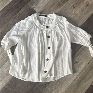 Zara Woman White Button Front Short Tie Sleeve Swing Top Shirt Size small