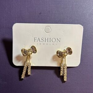 Elegant gold and silver bow dangle earrings perfect for any occasion. Add a touch of sparkle to your outfit with these stunning pieces.