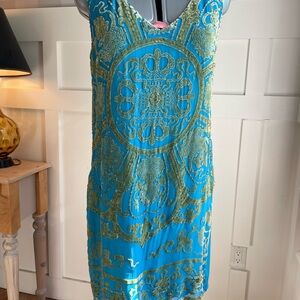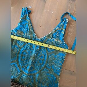 Hale Bob Silk Turquoise and Gold Mini Dress Size XS