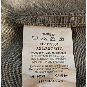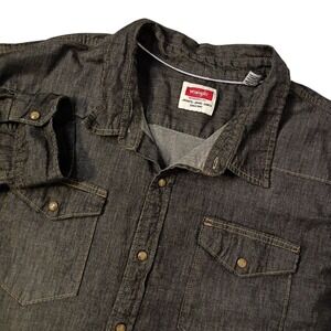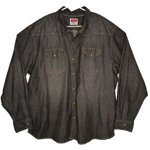 Wrangler Pearl Snap Shirt Mens 3XL Slim Untucked Fit Black Denim Stretch Western