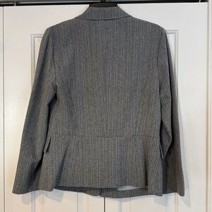 Elegant charcoal pinstripe suit set. Ideal for business wear.