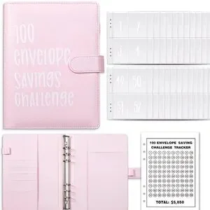 Organize your savings with this pink envelope challenge binder. Includes labeled envelopes and a savings tracker. Easy way to save $5050 .