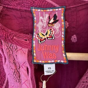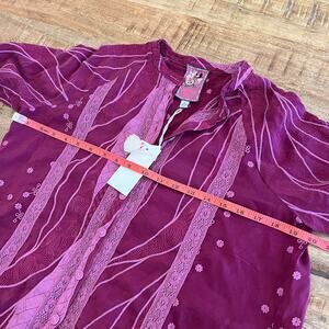 NWT Johnny Was Chamylla Blouse Top XS Embroidered Button Front Boho Floral Lace Eyelet Purple Plum Lightweight Breathable