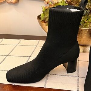 Quince Eco Knit Black Heeled Boots Size 8 NIB Modern Chic Square Toe Quality Brand Versatile