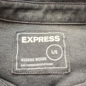 Express Gray Polo Shirt Casual Cotton Blend Moisture Wicking. Size large. Gray. Discover the perfect blend of style and comfort with the Express Gray Polo Shirt. Crafted from a soft cotton blend, this shirt features a classic polo collar and a relaxed fit, making it an ideal choice for versatile, everyday wear. The subtle texture adds a touch of sophistication, ensuring you look effortlessly polished in any setting. 67% cotton/33% polyester. Excellent preowned condition. Refer to pics for measurements.