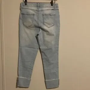 Stylish light blue jeans with a trendy cropped design. Ideal for everyday wear. Soft and comfortable.